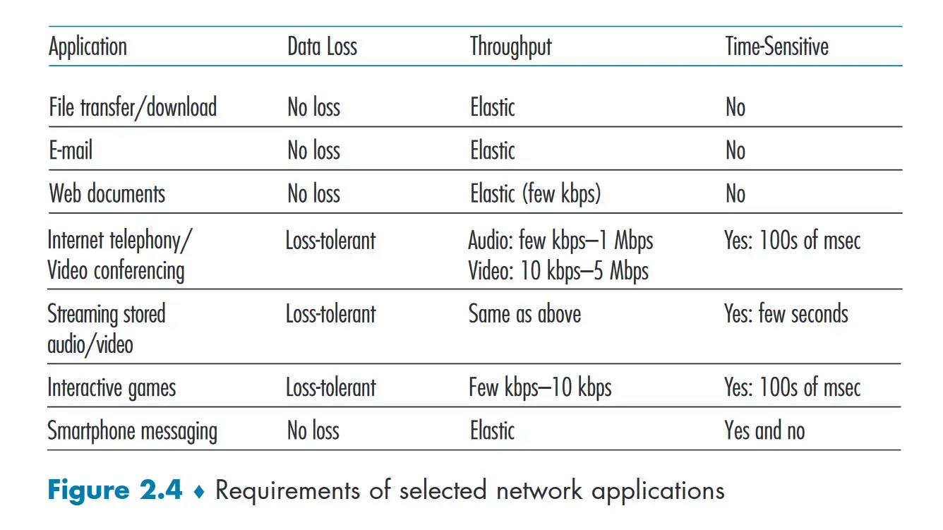 Một số ứng dụng như truyền email, truyền tập tin là các ứng dụng thích nghi. Chúng có thể thích ứng với lượng throughput còn lại khi các phiên khác đang sử dụng. Trong khi đó, một số ứng dụng khác như các ứng dụng đa phương tiện thì lại cần một mức throughput tối thiểu cố định.