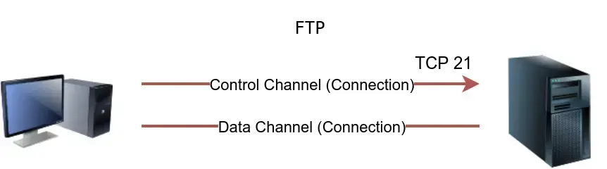 - Ban đầu client sẽ kết nối đến FTP server chạy ở port 21. Việc kết nối này sẽ tạo một control channel và tất cả các câu lệnh đều được gửi thông qua kênh truyền này.