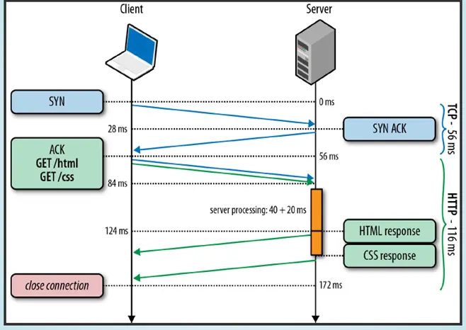 - Một RTT cho HTTP request và vài byte đầu của HTTP response khi trả về.