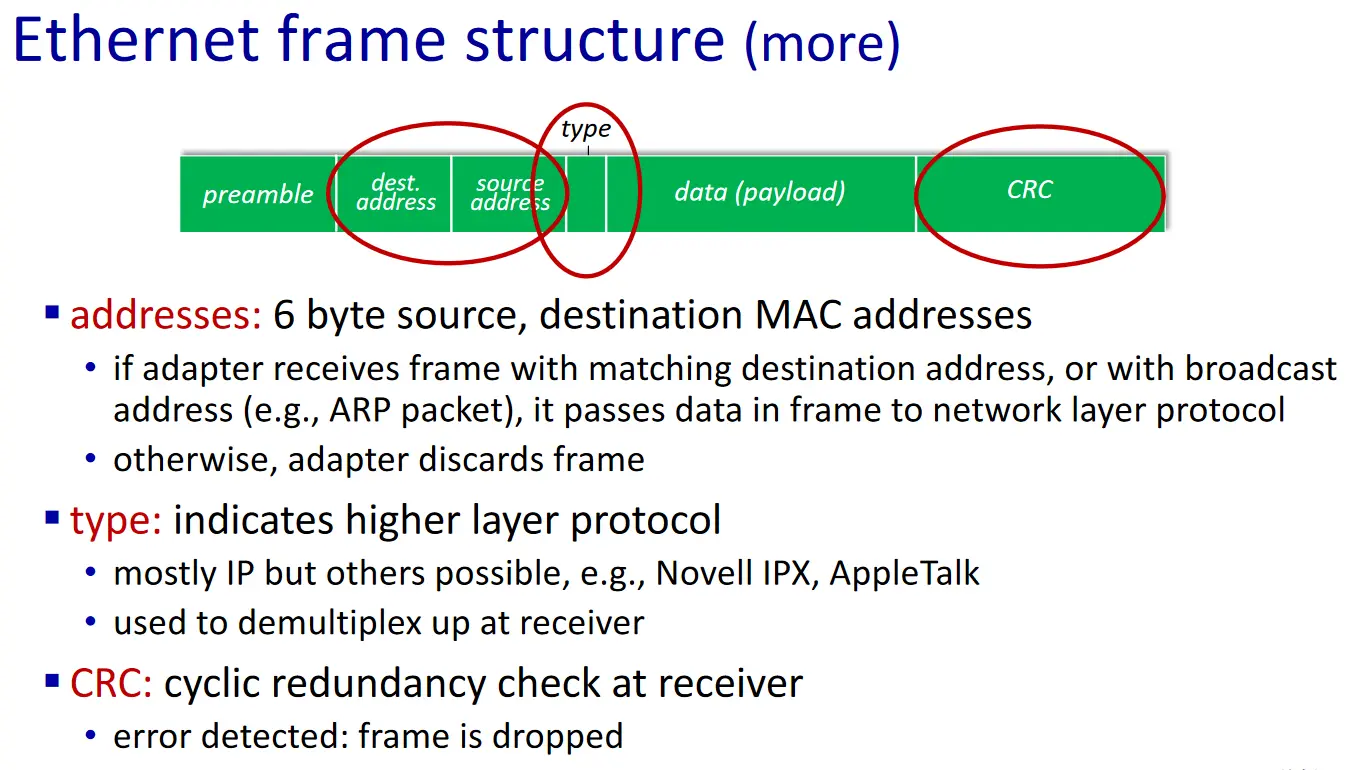 Cấu trúc của gói tin Ethernet là: