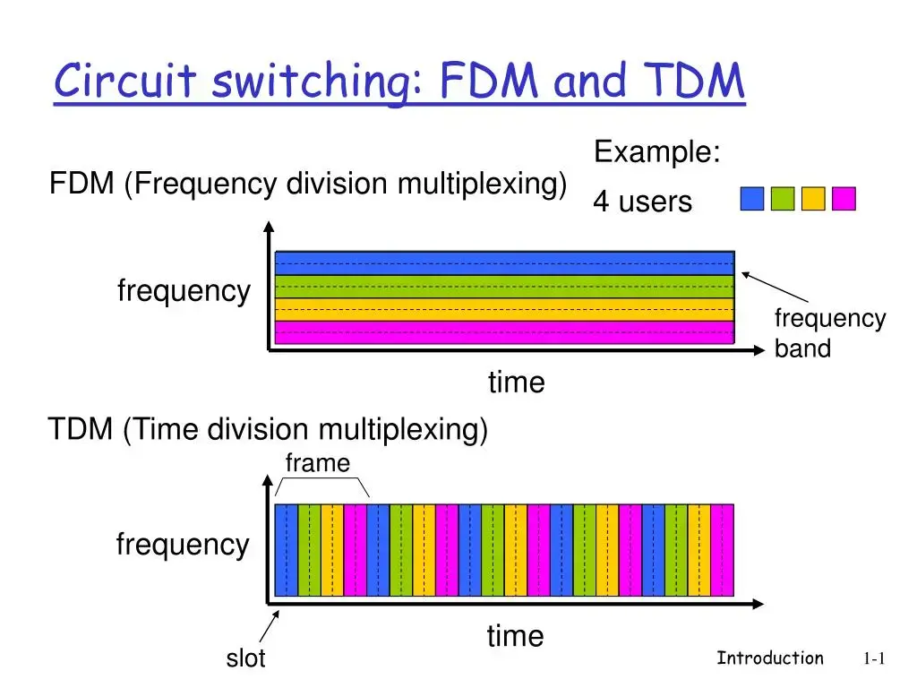 Time Division Multiplexing (TDM) là phân chia các kết nối theo thời gian. Tổng thời gian được chia thành các khung thời gian cố định (frame). Mỗi frame được chia thành nhiều khe thời gian (time slot).