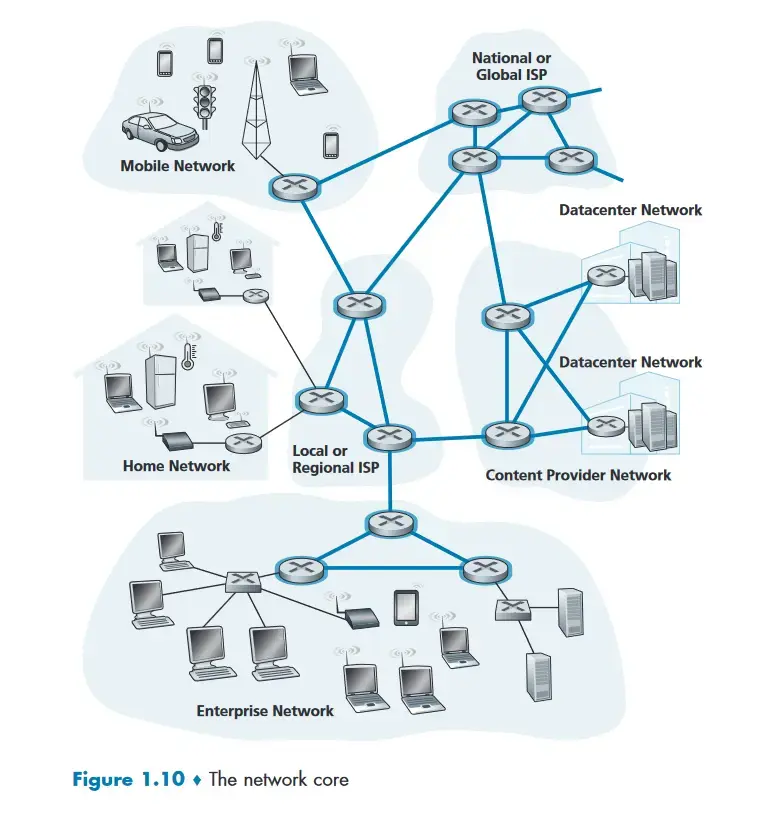Những thành phần được tô đậm trong hình bên dưới là những thành phần thuộc mạng lõi (network core). Có hai cách để chuyển dữ liệu qua mạng lõi: chuyển mạch gói (packet switching) và chuyển mạch mạch (circuit switching).