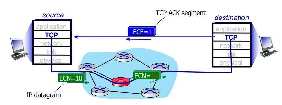 Khi có khả năng xảy ra tắc nghẽn, các router sẽ chủ động đánh dấu gói tin IP (đánh dấu ECN bit) nhằm báo hiệu cho bên gửi giảm tốc độ truyền.
