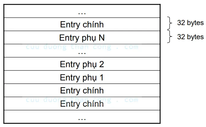 Một RDET có thể có nhiều entry chính và phụ xen lẫn kết hợp với nhau. Các entry chính sẽ xếp sau các entry phụ: