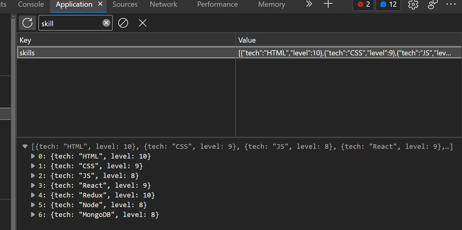 sessionStorage.setItem("skills", skillsJSON)Kết quả: