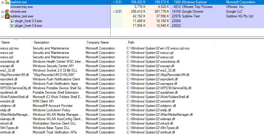 Hình dưới minh họa danh sách các DLL mà chương trình explorer.exe sử dụng: