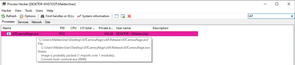 C:\Users\MaldevUser\Desktop\IATCamouflage\x64\Release>dumpbin.exe /IMPORTS IATCamouflage.exe