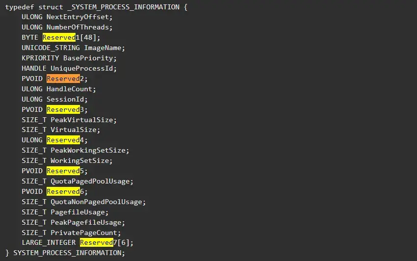 typedef struct _SYSTEM_PROCESS_INFORMATION {
