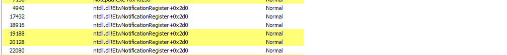 Ví dụ, các thread chạy hàm EtwNotificationRegister chính là các worker thread được tạo ra bởi Windows nhằm báo hiệu cho hệ điều hành về một sự kiện nào đó (ETW là viết tắt của Event Tracing for Windows):