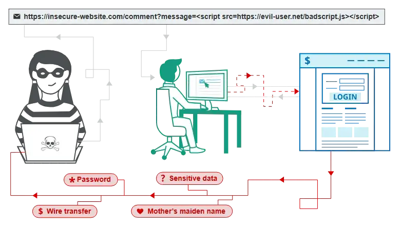 - Reflected XSS: mã độc nằm trong HTTP request.