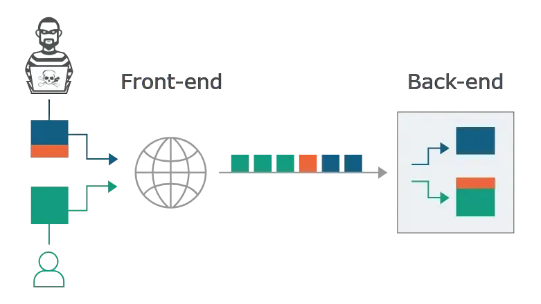 Trong tình huống này, front-end và back-end phải đồng ý về ranh giới giữa các request. Nếu không, kẻ tấn công có thể gửi request mơ hồ, được diễn giải khác nhau bởi front-end và back-end: