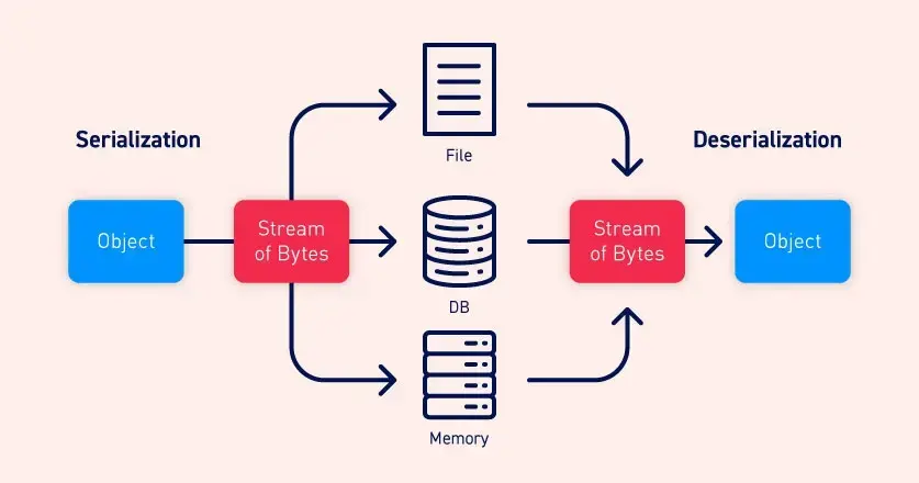 Deserialization là quá trình khôi phục luồng byte này thành một bản sao hoàn toàn chức năng của đối tượng ban đầu, ở trạng thái chính xác như khi nó được tuần tự hóa. Logic của trang web sau đó có thể tương tác với đối tượng đã được giải tuần tự hóa này, giống như với bất kỳ đối tượng nào khác.