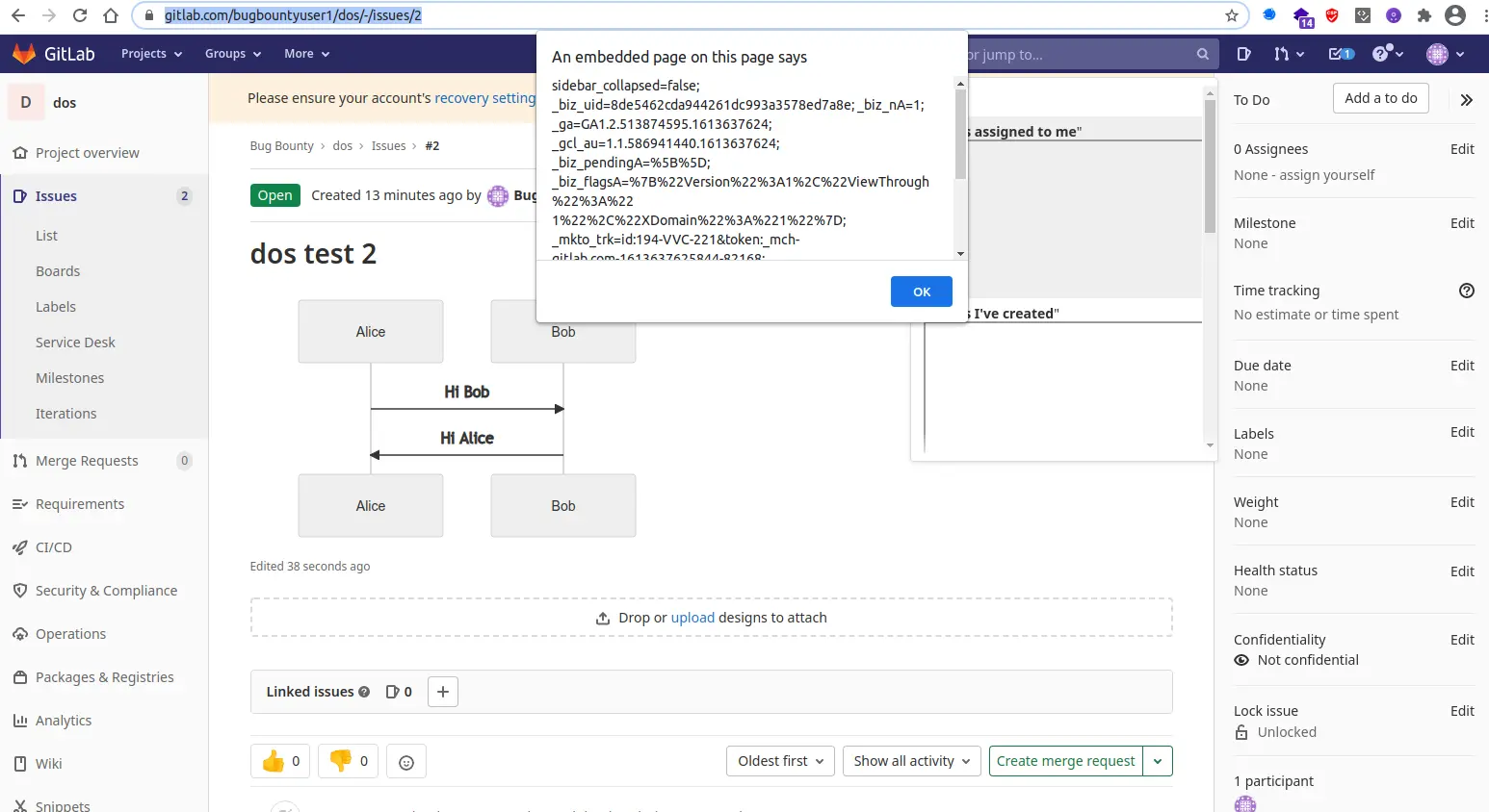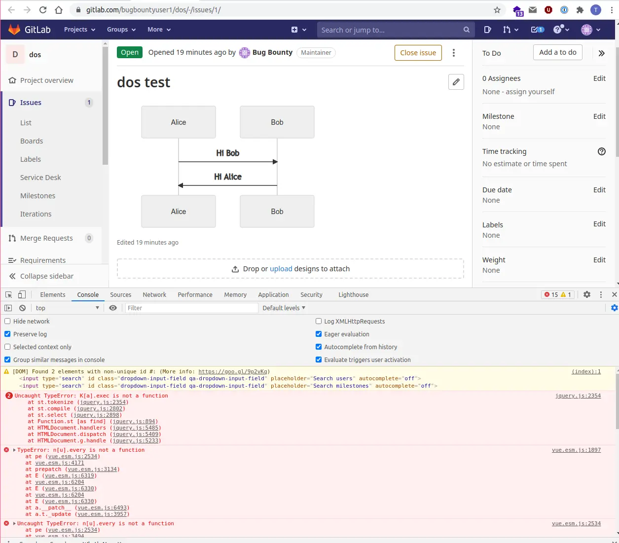 Bất kỳ attacker nào tạo issue hoặc comment vào issue và sử dụng payload sau đều có thể làm hỏng trang UI của issue đó: