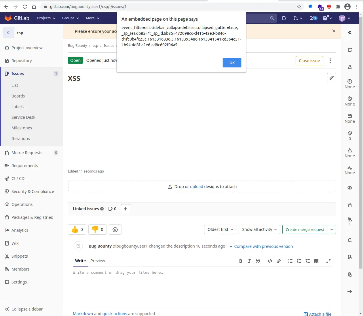 https://gitlab.com/<user>/csp/-/jobs/<job_id>/artifacts/raw/payload.jsPayload để thực hiện XSS sẽ là:
