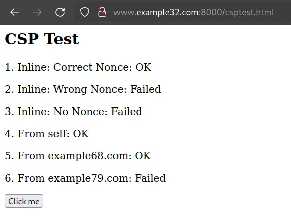 Khởi chạy server và truy cập vào http://www.example32.com:8000/csptest.html: