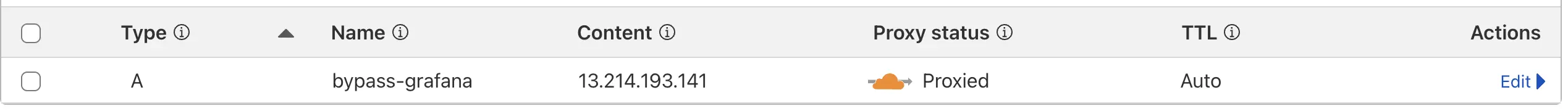 Trong trường hợp này, để truy cập application mà không cần dùng VPN thì ta có thể tạo một DNS A record trong CloudFlare zone mà ta kiểm soát rồi trỏ nó đến IP gốc của origin server.