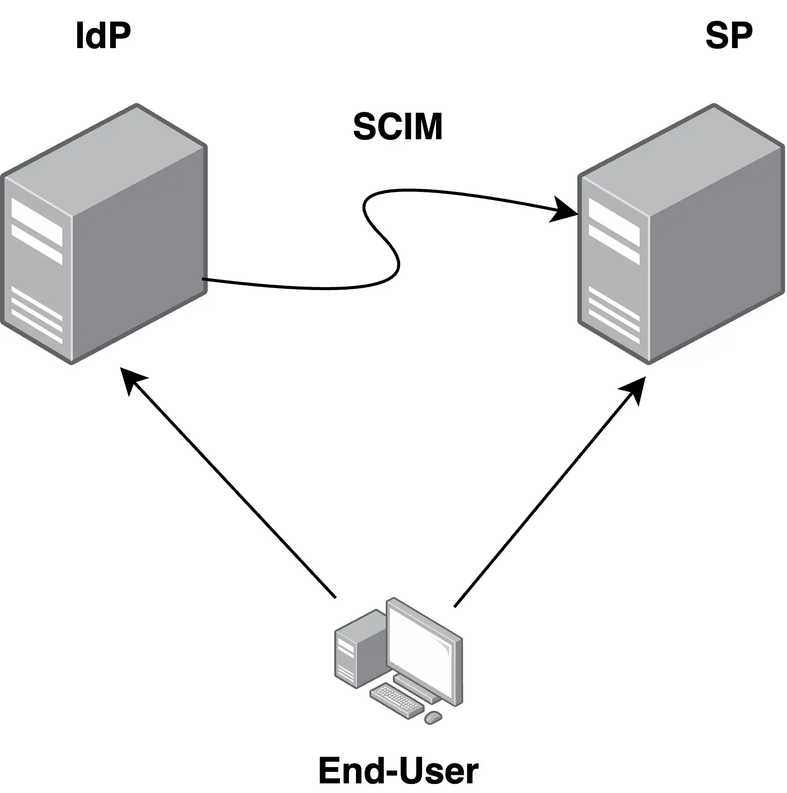 Thông thường, SCIM hoạt động theo mô hình IdP-SP bao gồm IdP (Okta, …) và SP (ứng dụng cung cấp resource).