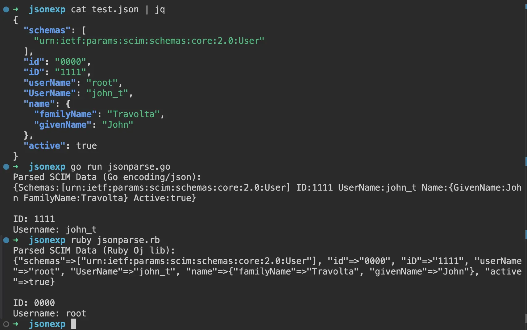 Liên quan đến An Exploration & Remediation of JSON Interoperability… | Bishop Fox và sự khác biệt giữa các JSON parser có thể dẫn đến trường hợp thú vị sau:
