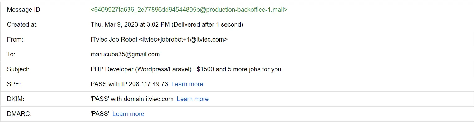 Các header này chứa nhiều thông tin có giá trị chẳng hạn như địa chỉ email để reply, IP của người gửi, … Ngoài ra, nó còn cho biết rằng email có thông qua được những giao thức chống giả mạo chẳng hạn như SPF hay DKIM hay không.