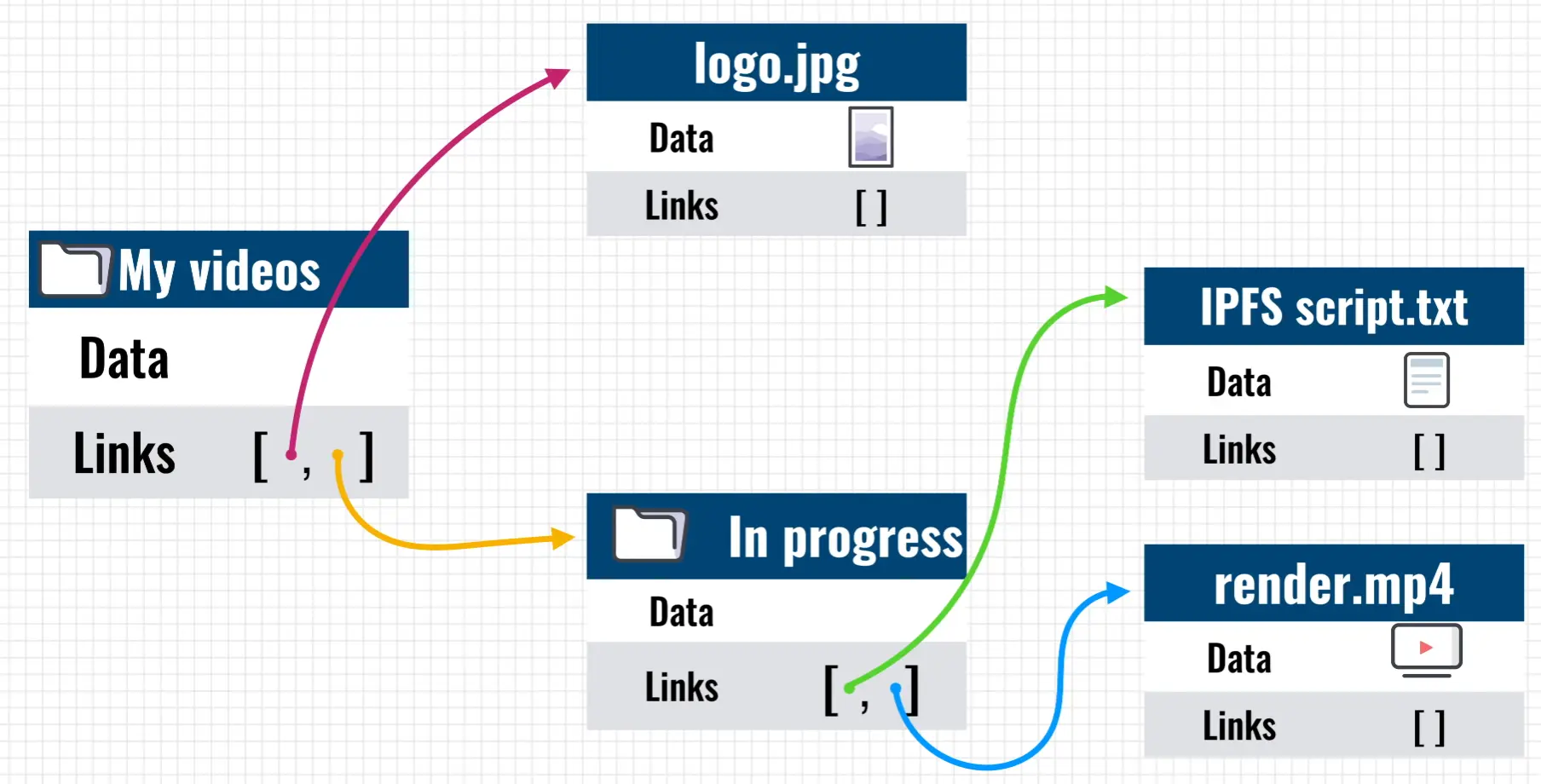 IPLD cho phép IPFS biểu diễn và thao tác với bất kỳ định dạng dữ liệu nào, có thể là file, thư mục, etc.