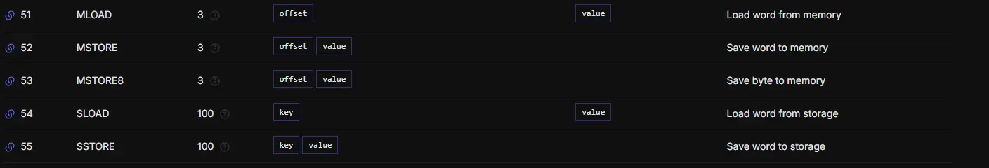 Khi xem danh sách các opcode của EVM Codes - An Ethereum Virtual Machine Opcodes Interactive Reference, ta thấy rằng việc lưu và đọc storage tốn lượng gas nhiều hơn (tối thiểu là 100) so với việc lưu và đọc memory: