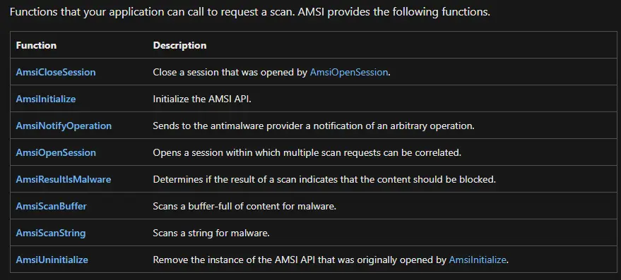Core implementation của AMSI API được cung cấp bởi amsi.dll.