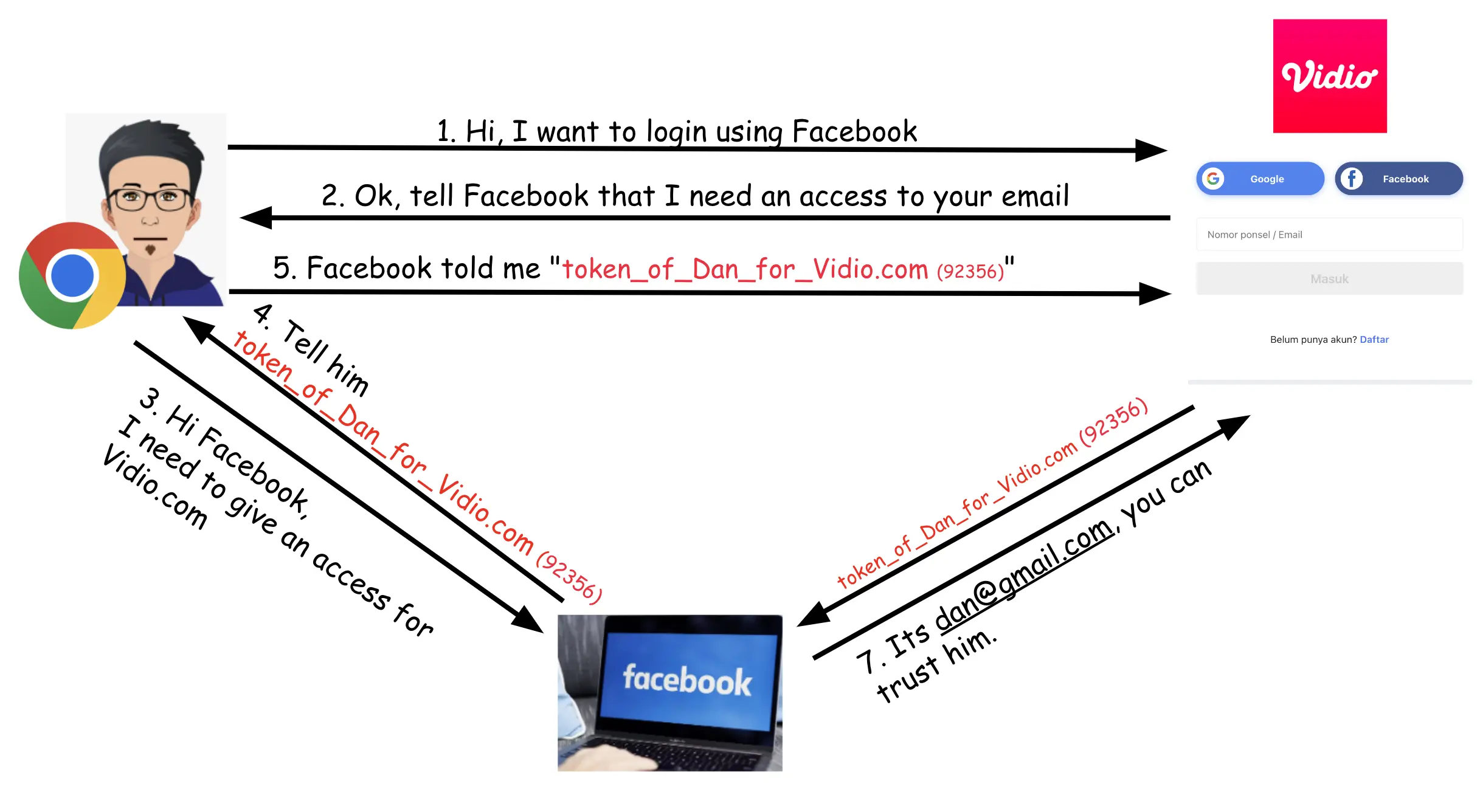 Khi applicatiom được đăng ký với developers.facebook.com, Facebook sẽ tạo ra một unique random App ID. Bằng cách này, Facebook sẽ biết được app nào đang thực hiện OAuth flow.