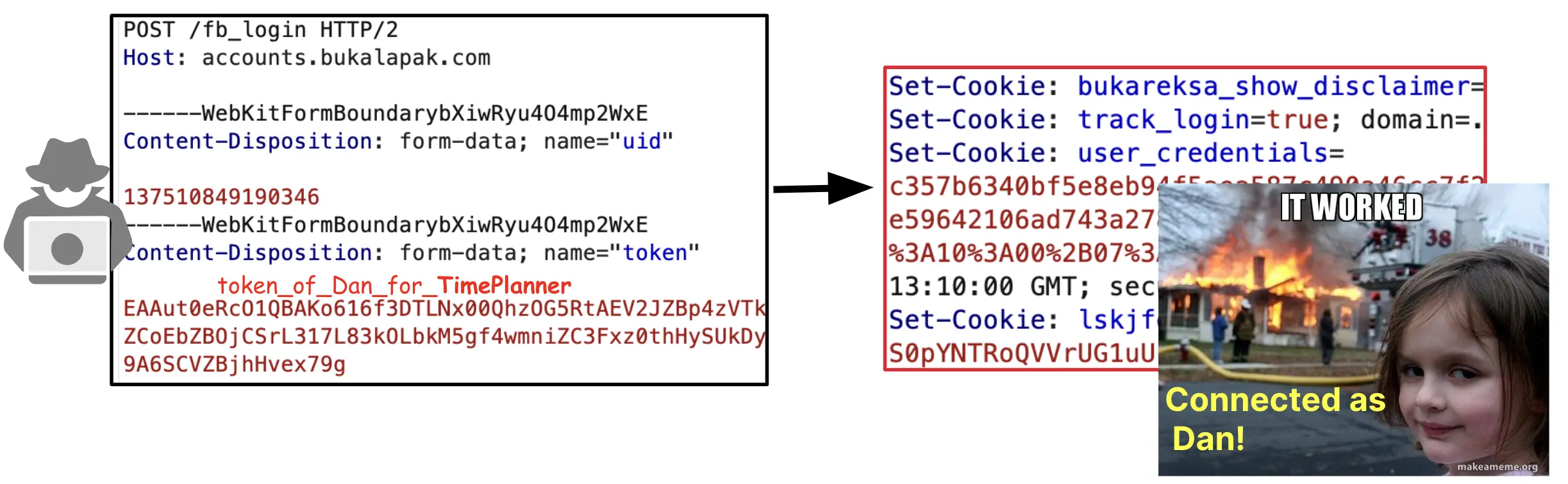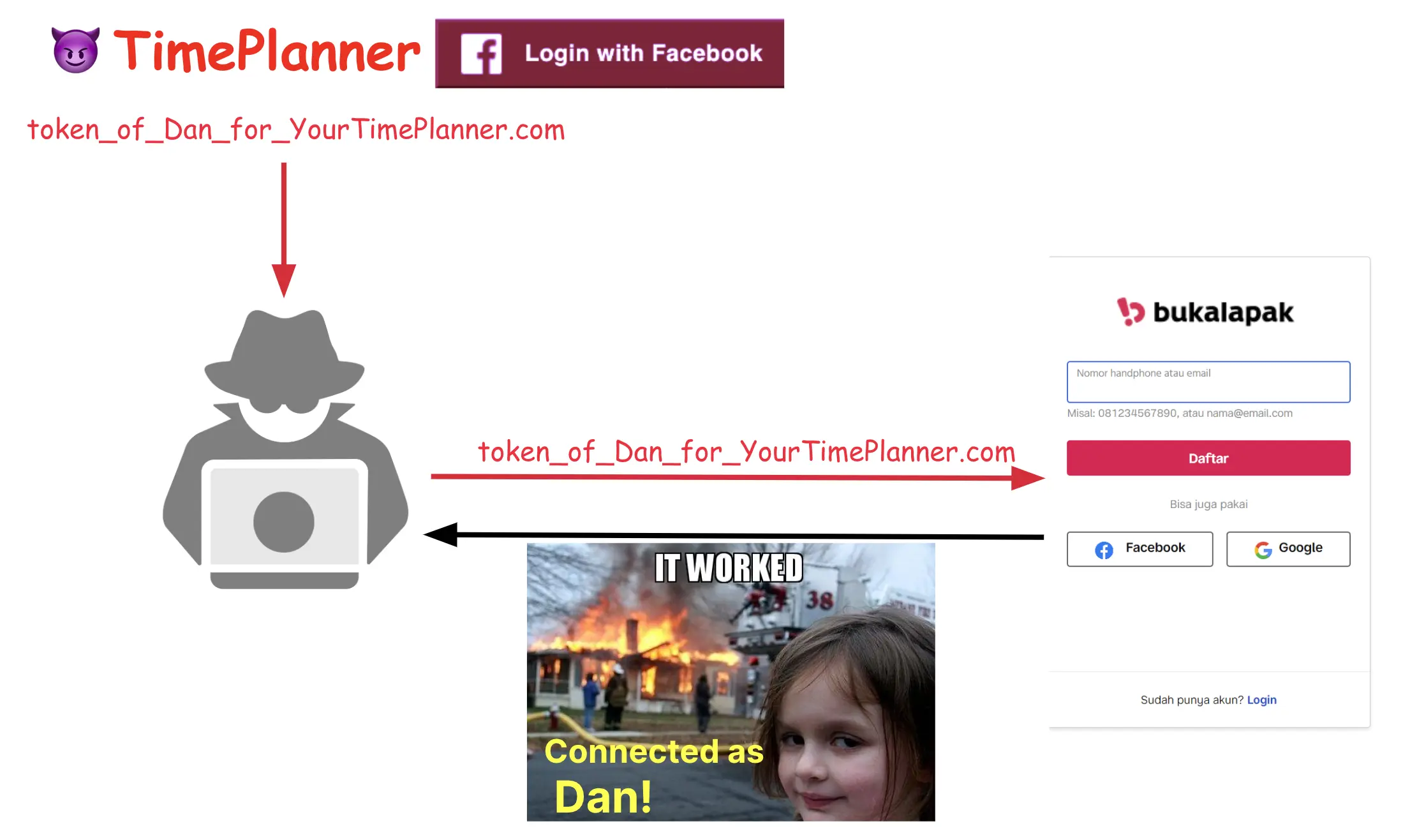 Endpoint /fb_login ở accounts.bukalapak.com sẽ nhận access token thông qua query param và sẽ trả về credentials cho người dùng.