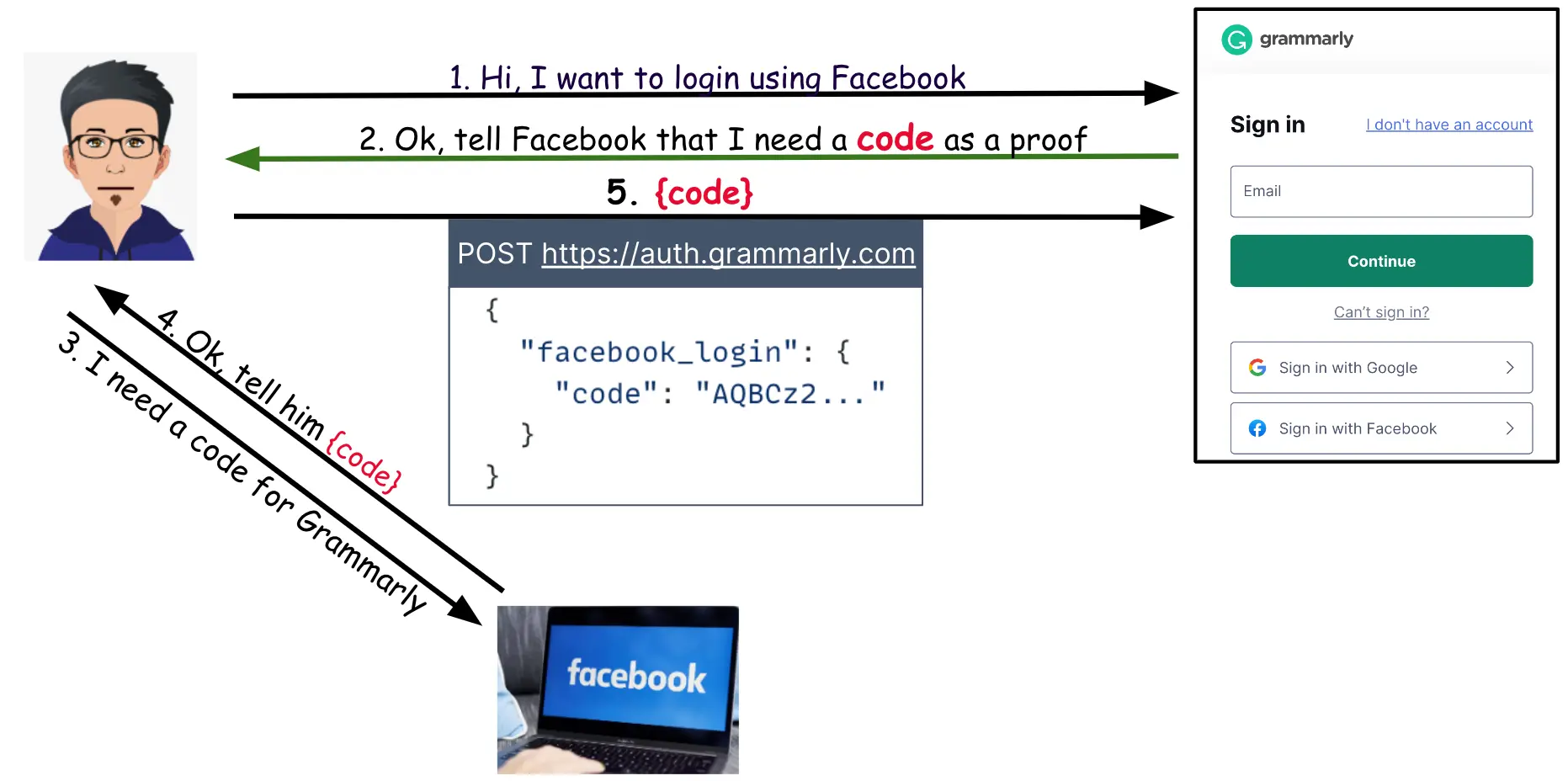https://www.grammarly.com/social/redirect?code=[code]User gửi code này đến https://auth.grammarly.com sử dụng một POST request: