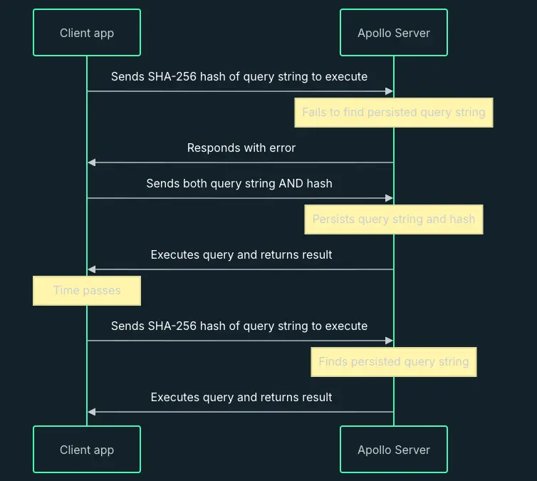 Giá trị hash được tính trên body của GraphQL query, nếu server tìm thấy trong database hoặc cache có giá trị hash tương ứng thì sẽ thực thi operation. Đây được gọi là GraphQL Automatic Persisted Queries (APQ) protocol.